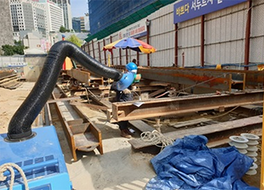 건설과정에 발생하는 비산먼지 등 각 현장에서 발생하는 대기오염 물질을 현장 특성에 맞는 방진대책을 수립하여 현장의 비산먼지 발생 저감노력을 하고 있습니다. 매일 2회 이상 살수 차량을 이용하여 현장 내외 물을 뿌리고, 전 현장 진출입로에 세륜 장치 및 고압살수기를 설치하여 차량 진출입시 대기오염물질을 제거 후 반출하고 있으며, 다양한 공법을 활용하여 대기오염 발생 저감에 힘쓰고 있습니다.