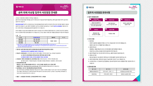 계룡건설은 사전점검에 앞서 자체점검 팀을 운영하여 고객들에게 품질 만족도를 제고시키기 위해 노력하고 있습니다.