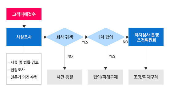 계룡건설은 고객의 피해관련 현장조사, 서류검토, 전문가 의견, 법률 검토 등을 통해 고객의 피해 상황을 객관적이고 명확하게 분석하고 있습니다.