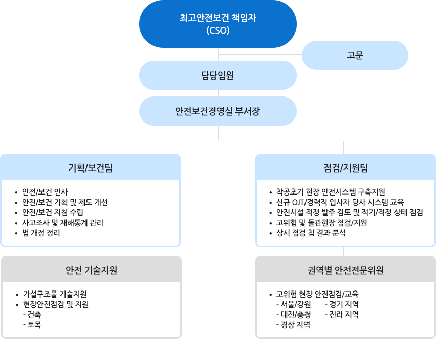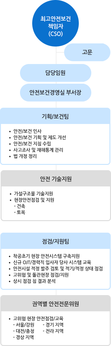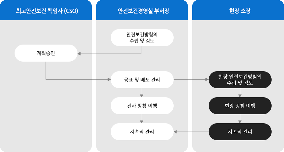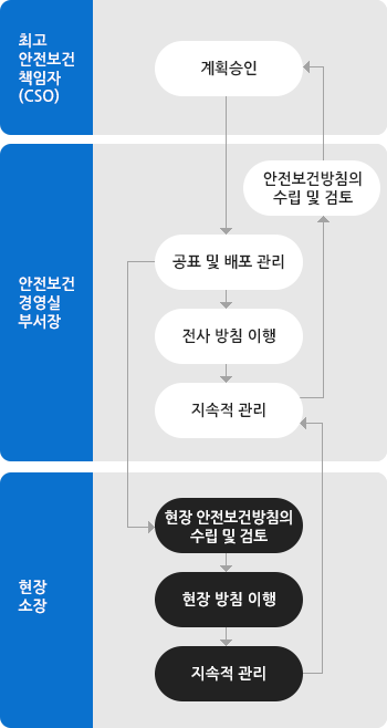 계룡건설은 안전을 최우선 가치로 삼고 모두가 나의 가족이라는 마음으로 함께 실천하는 안전 경영을 핵심 목표로 안전보건경영을 실천하고 있습니다. 자율안전보건경영체제 정착을 위해 설계·시공 초기 단계부터 안전을 최우선 과제로 설정하고, 안전보건문화 정착을 위한 캠페인 활동을 지속적으로 운영하고 있습니다.